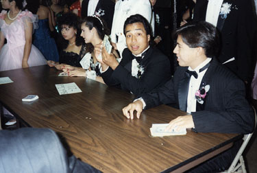 Prom Night Frankie and Roger play casino games with fake money at the KC Hall. Don't bring that cash to the reunion, boys. It won't buy you any drinks.