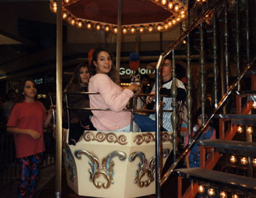 Post SAT Angela, Kelley and Russ ride the carousel at Victoria Mall after taking the SAT.